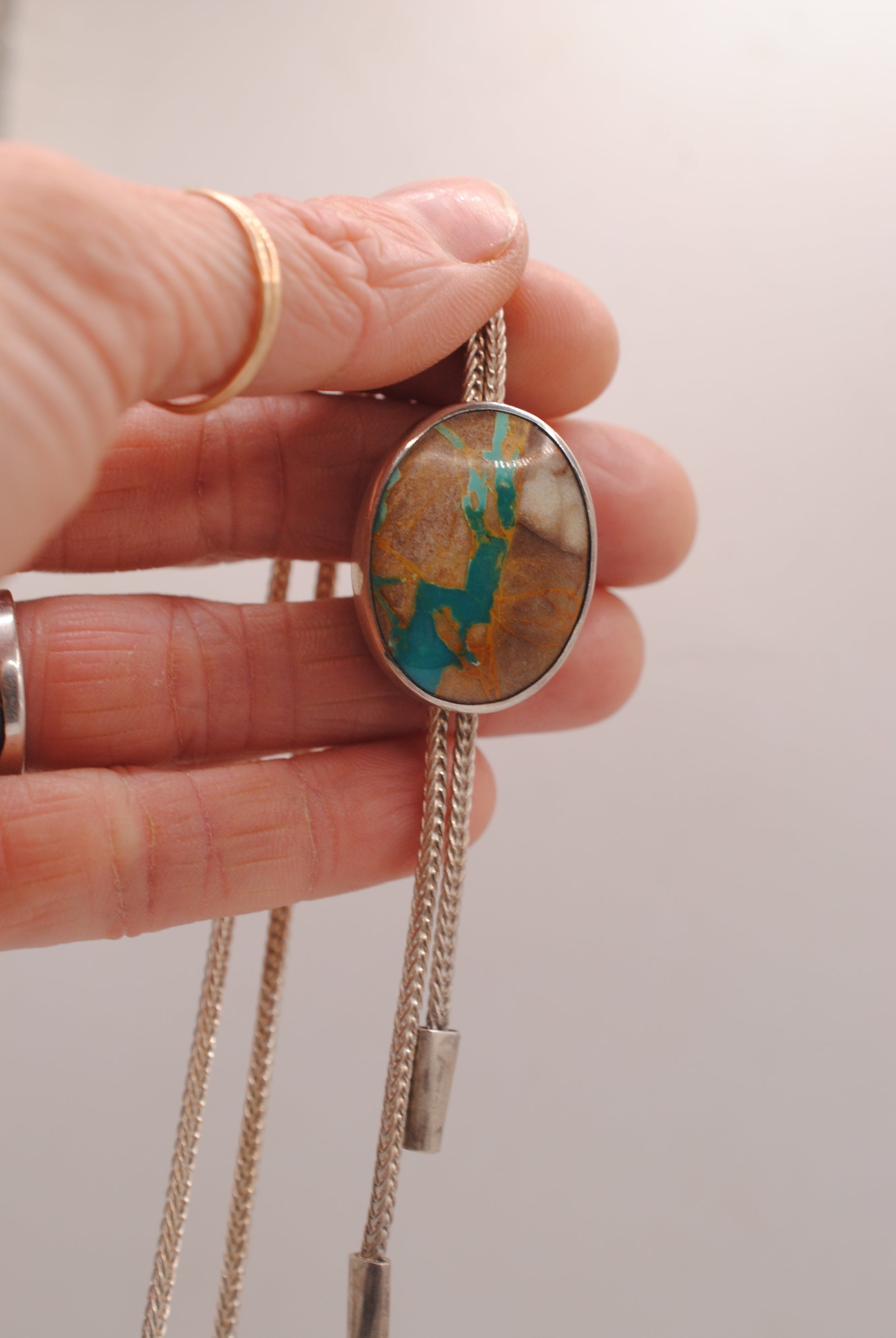 A stunning piece of Royston Ribbon turquoise set in sterling silver.