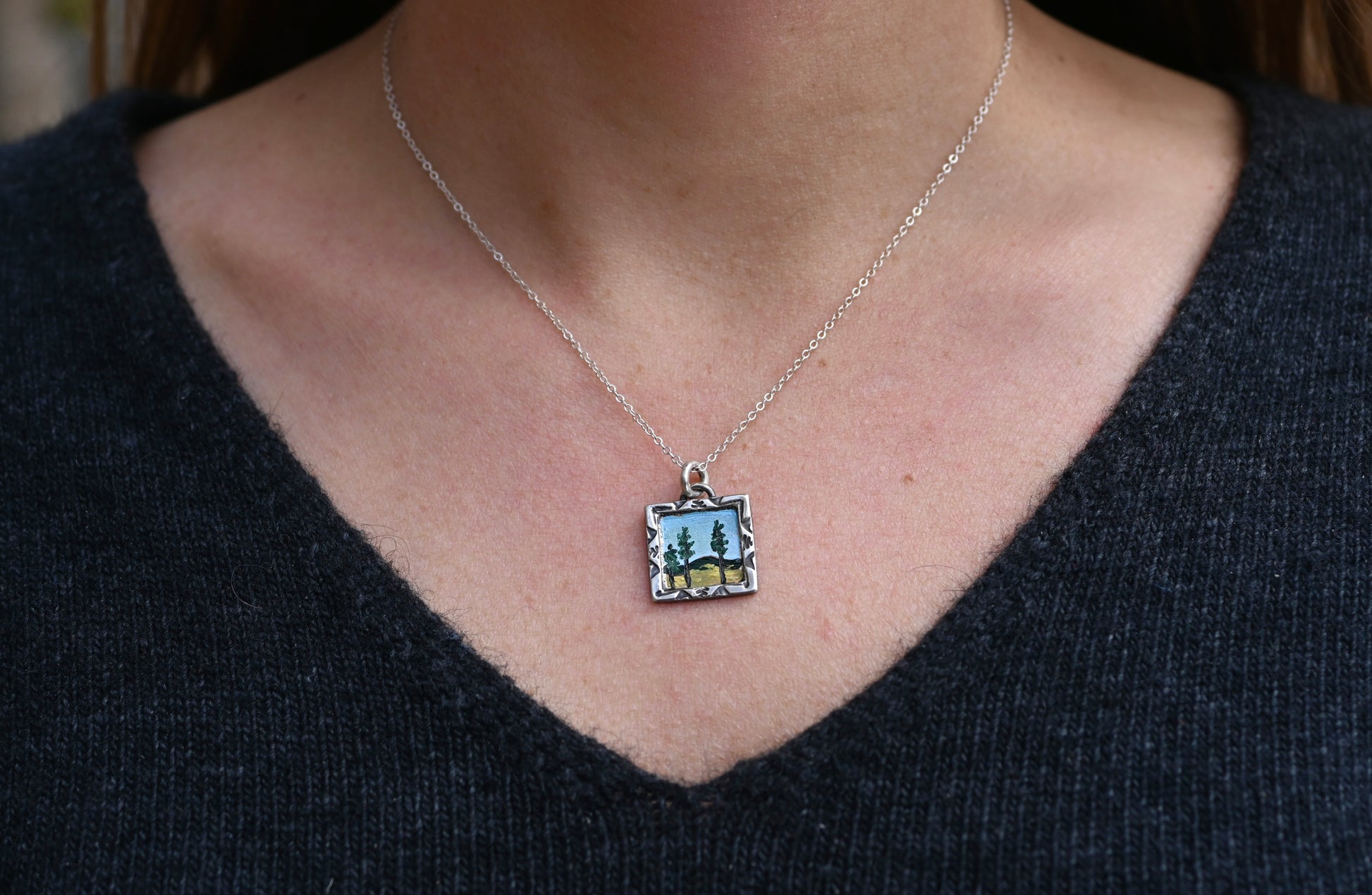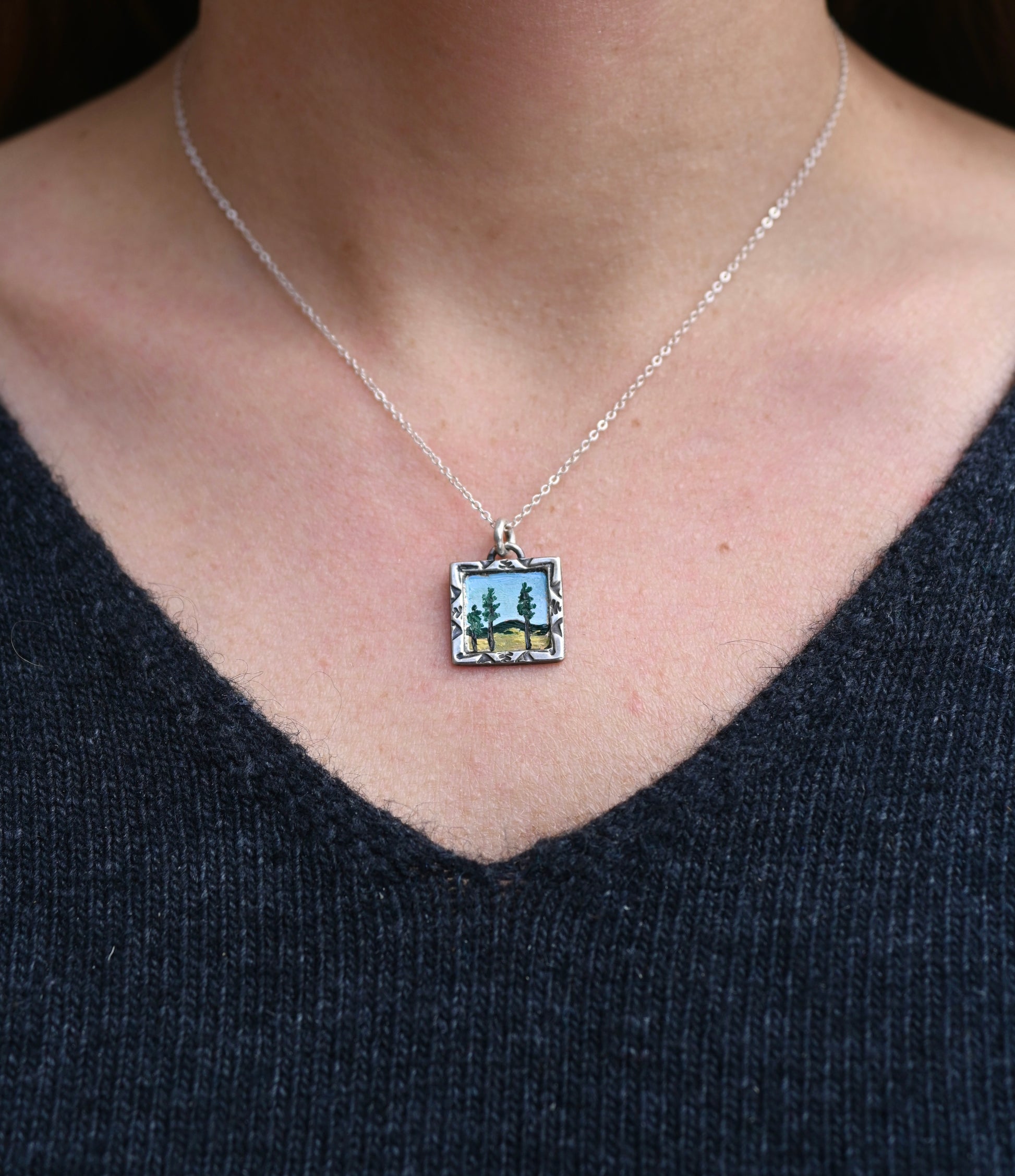 "Tall Pines" Mini Oil Painting Necklace