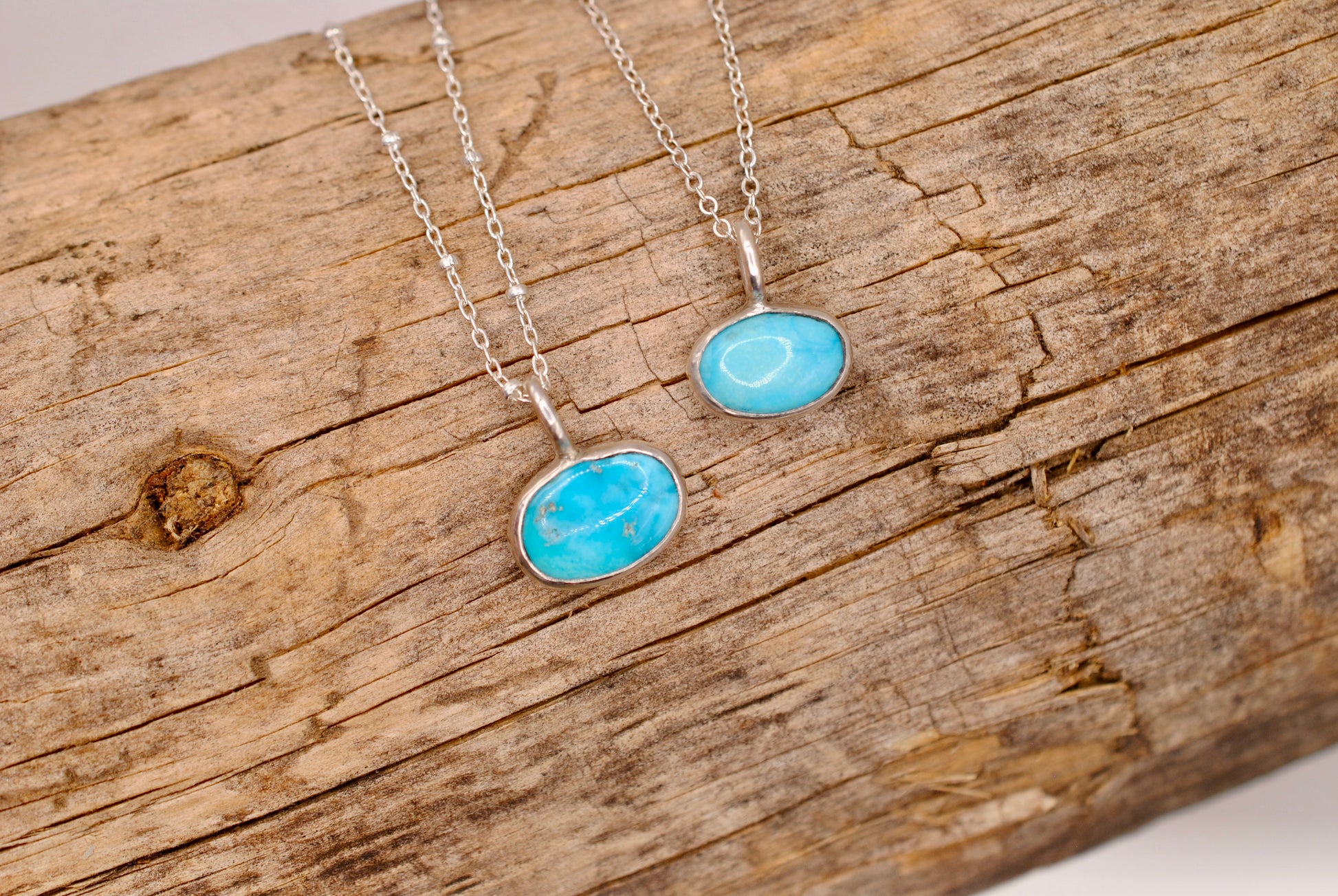 A tiny drop of Blue Bird turquoise set in sterling silver
